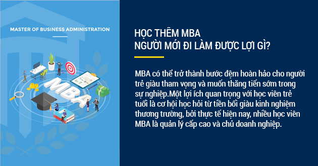 Xem thêm >>MBA có thể trở thành bước đệm hoàn hảo cho người trẻ giàu tham vọng và muốn thăng tiến sớm trong sự nghiệp.Một lợi ích quan trọng với học viên trẻ tuổi là cơ hội học hỏi từ tiền bối giàu kinh nghiệm thương trường, bởi thực tế hiện nay, nhiều học viên MBA là quản lý cấp cao và chủ doanh nghiệp.