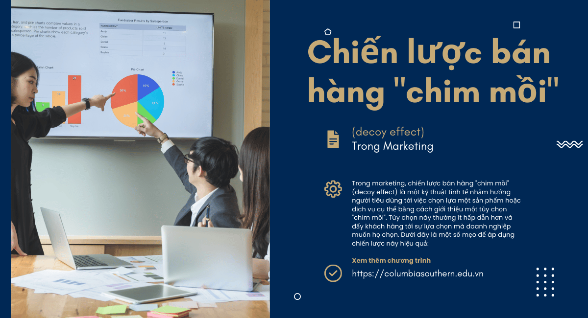 Xem thêm >>Trong marketing, chiến lược bán hàng “chim mồi” (decoy effect) là một kỹ thuật tinh tế nhằm hướng người tiêu dùng tới việc chọn lựa một sản phẩm hoặc dịch vụ cụ thể bằng cách giới thiệu một tùy chọn “chim mồi”. Tùy chọn này thường ít hấp dẫn hơn và đẩy khách hàng tới sự lựa chọn mà doanh nghiệp muốn họ chọn. Dưới đây là một số mẹo và kỹ thuật để áp dụng chiến lược bán hàng chim mồi hiệu quả trong marketing: